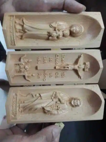 Bộ bàn thờ Công giáo mini là một sản phẩm tượng ảnh Công giáo được chạm khắc tinh xảo trên chất liệu gỗ Beech và được thiết kế độc đáo để khi ghép lại ta được một khối hình trụ tròn rất nhỏ gọn. Giữa các tượng được liên kết lại với nhau bằng những miếng bản lề được làm bằng thép không rỉ rất chắc chắn.